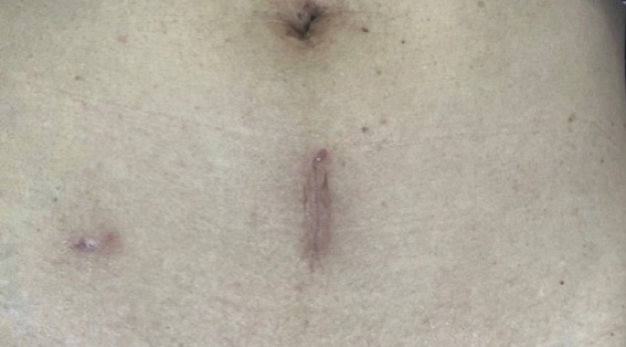 術後3か月時点の術創。整容面でも優れています。